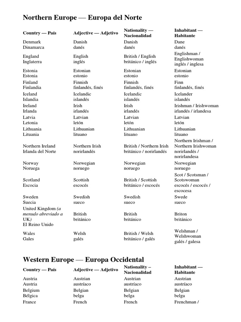 Países y nacionalidades (blog) parque. Actualmente, estudiantes de más de 100 nacionalidades estudian uno de los 9 idiomas disponibles en nuestros 50 ef campus internacionales de idiomas en 19 países alrededor del mundo. Algunos de los casos a resaltar, es que dicho artículo se emplea cuando nos referimos a una familia por su apellido, por ejemplo, a las nacionalidades, cosas que son únicas, instrumentos musicales, eventos históricos, momentos determinados del día o nombres propios de mares, ríos, cordilleras, islas, etc. Ahora que manejas toda la teoría, te recomendaría que hicieras unos sencillos y prácticos ejercicios que te ayudarán a practicar y a poner a prueba todo lo que has aprendido. Ejercicios con soluciones de pronombres personales en inglés bueno, ya la lección está casi completa.